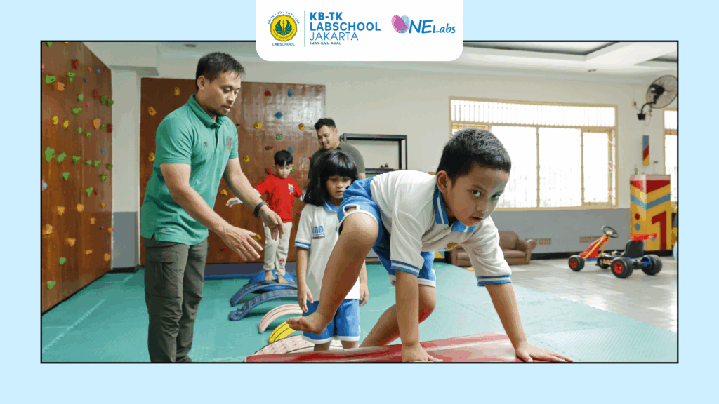 KB-TK Labschool berkomitmen menjadi sekolah yang inklusif dan ramah bagi semua anak, termasuk bagi anak berkebutuhan khusus (ABK). Setiap anak dipandang unik dan istimewa, memiliki potensi luar biasa yang dapat berkembang apabila mendapatkan dukungan dan stimulasi yang sesuai dengan kebutuhannya. Program inklusi di TK Labschool dirancang untuk mendukung perkembangan anak secara menyeluruh, mencakup aspek fisik, sensorik, kognitif, bahasa, sosial, dan emosional. Melalui lima program utama yaitu Program Healty Morning, Porgram Practical Life, Program Sensory Movement, Program Swimming Sensory, serta Program Literasi dan Numerasi. Sekolah berupaya menumbuhkan anak yang mandiri, fokus, seimbang, dan siap melangkah ke jenjang pendidikan berikutnya.